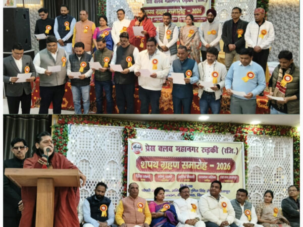 रुड़की।प्रेस क्लब महानगर रुडकी रजि०का शपथ ग्रहण समारोह का ईदगाह चौराहा स्थित होटल सचिन इन्टरनेशनल में आयोजित हुआ,जिसमें क्लब अध्यक्ष प्रिंस शर्मा,मोनू शर्मा महासचिव,आरिफ नियाजी उपाध्यक्ष,सलमान मलिक सचिव तथा शहजाद