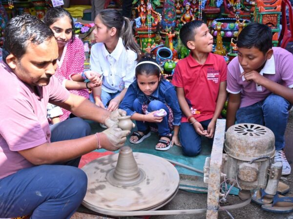विरासत महोत्सव में नन्हे मुन्ने बच्चों ने सीखे मिट्टी के बर्तन,पतंग व अन्य क्राफ्ट आइटम बनाने की विधि  डॉल्फिन इंस्टीट्यूट में शिक्षा ग्रहण करने वाले मेघालय के कई छात्र छात्राओं ने भी हैंडीक्राफ्ट ज्वैलरी सहित अनेक स्टालों पर जाकर परखी भिन्न भिन्न कलाएं
