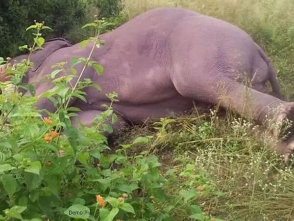हाई टेंशन लाइन के नीचे एक वयस्क टस्कर का शव पड़ा मिला
