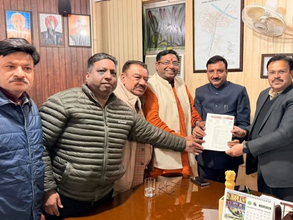 रुड़की। रुड़की जिला व्यापार मंडल के एक प्रतिनिधिमंडल ने नगर निगम के मेयर प्रतिनिधि ललित मोहन अग्रवाल एवं नगर आयुक्त से मुलाकात कर चंद्रशेखर चौक पर एक भव्य घंटाघर निर्माण