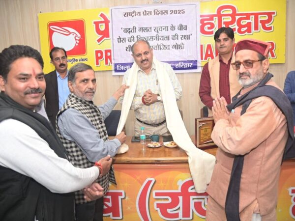 हरिद्वार। राष्ट्रीय प्रेस दिवस के अवसर पर प्रेस क्लब सभागार में बढ़ती गलत सूचना के बीच प्रेस की विश्वसनीयता की रक्षा करना विषय पर गोष्ठी का आयोजन किया गया।जिसमें मुख्य