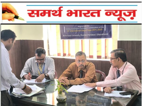 रुड़की। मदरहुड विश्वविद्यालय में 10वें अंतर्राष्ट्रीय योग दिवस एवं 100 दिवसीय काउंटडाउन कार्यक्रम के अंतर्गत दिनांक 02 मई 2025 को योग चैपालः निबन्ध प्रतियोगिता का आयोजन किया गया, जिसमें विश्वविद्यालय