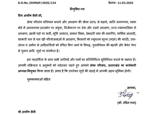 रुड़की।नमामि नर्मदा संघ के राष्ट्रीय अध्यक्ष पंडित हरीश उनियाल ने आचार्य रमेश सेमवाल जी महाराज को नमामि नर्मदा संघ,बुद्धिजीवी प्रकोष्ठ का राष्ट्रीय अध्यक्ष मनोनीत किया है।आचार्य रमेश सेमवाल जी महाराज