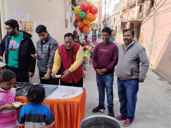 सुंदरलाल टेंट वालो द्वारा अपने आवास पञ्चमी अम्बर तालाब वार्ड नं 30 चुंन्नीलाल वाली गली पर दिल्ली विधानसभा चुनाव में 27 वर्षो बाद दिल्ली जीत की खुशी में बड़े उत्साह