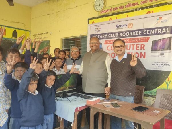 रोटरी क्लब रुड़की सेंट्रल द्वारा गोद लिए सरकारी प्राथमिक विद्यालय को कंप्यूटर किया समर्पित । रोटरी क्लब रुड़की सेंट्रल ने रोटरी वर्ष 2022-23 में गोद लिए हैप्पी स्कूल परियोजना के