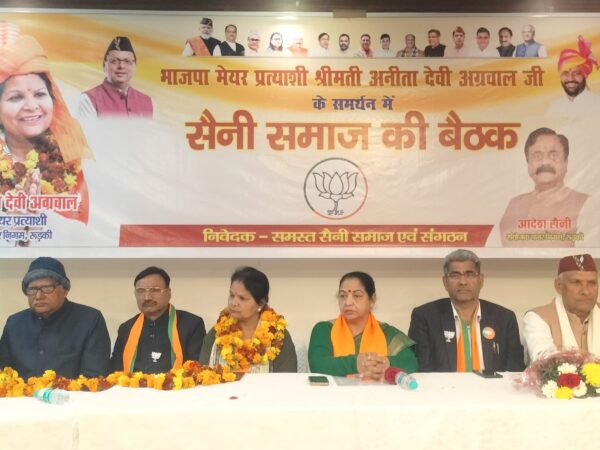 रुड़की के अनुसूचित समाज ने एक महत्वपूर्ण बैठक आयोजित की, जिसमें उन्होंने भाजपा मेयर प्रत्याशी अनीता देवी अग्रवाल का समर्थन करने का फैसला किया। इस अवसर पर मुख्य अतिथि के