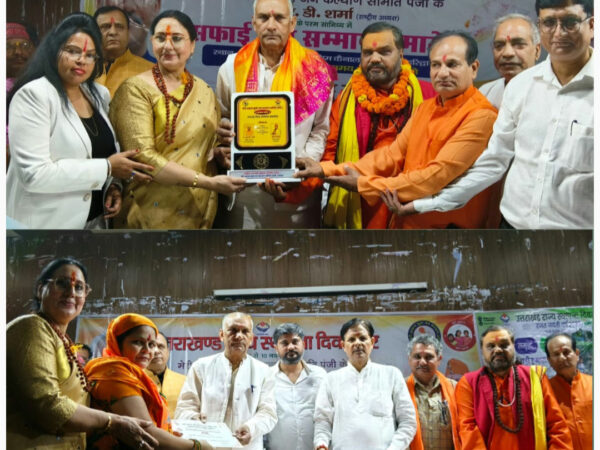 रुड़की।राज्य स्थापना दिवस के अवसर पर नगर निगम सभागार में स्वच्छता कर्मियों,पर्यावरण मित्रों तथा स्वच्छता अभियान से जुड़े पदाधिकारियों का सम्मान समारोह आयोजित किया गया।मेरी आवाज सुनो,जनकल्याण समिति द्वारा आयोजित