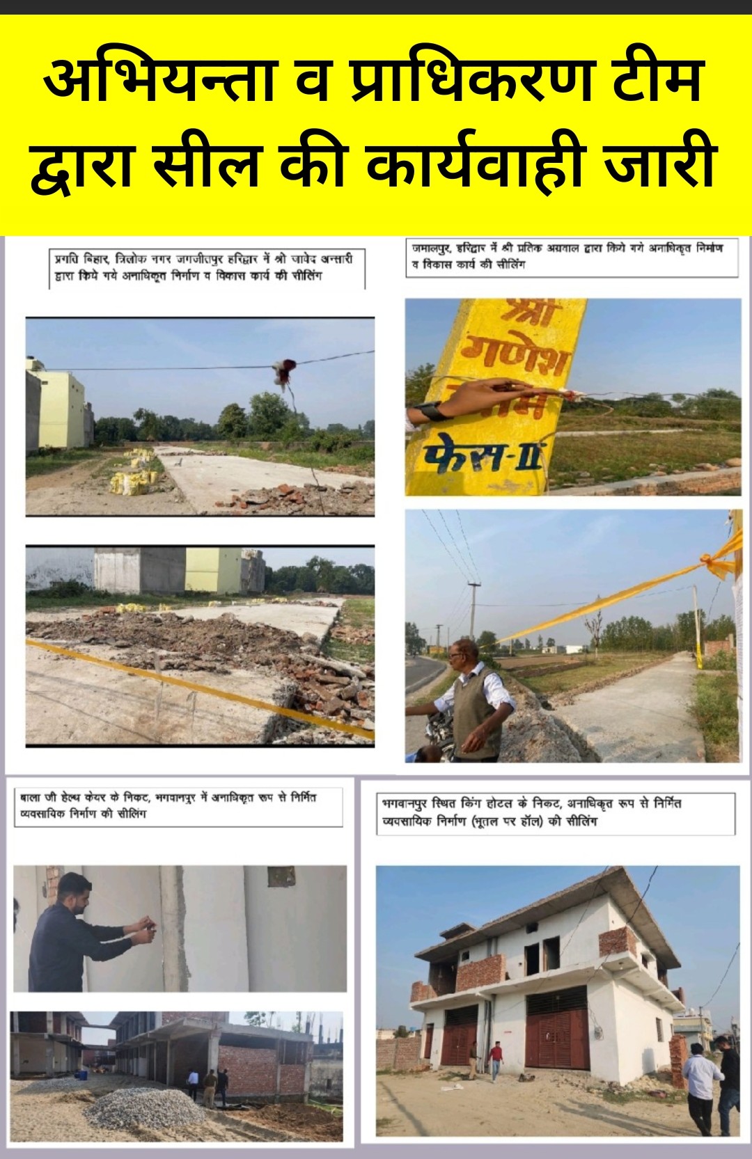 आज दिनांक 06.11.2023 में भगवानपुर सेक्टर के अन्तर्गत,बालाजी हैल्थ केयर के निकट भूतल व प्रथम तल पर किये गये,व्यवसायिक निर्माण, भगवानपुर देहरादून रोड स्थित, रायपुर एच०पी०पैट्रोल पम्प के निकट व्यवसायिक