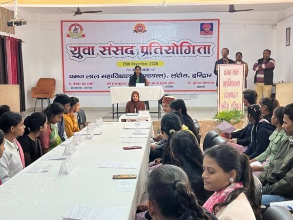 लंढौरा l चमन लाल महाविद्यालय के राजनीति विज्ञान विभाग द्वारा 25 नवंबर 2025 को “युवा संसद प्रतियोगिता” का सफल आयोजन किया गया। शासन के निर्देशानुसार आयोजित इस प्रतियोगिता में महाविद्यालय