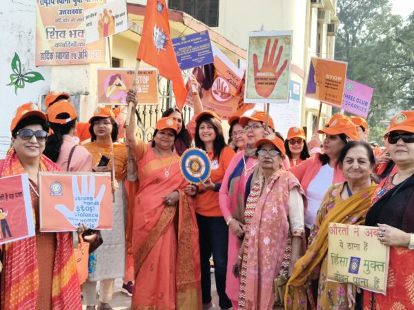 रुड़की।इनरव्हील क्लब 308,जोन-10 द्वारा ऑरेंज कैंपेन के अंतर्गत महिलाओं के विरुद्ध हिंसा के प्रति जागरूकता फैलाने हेतु एक प्रभावशाली रैली का आयोजन किया गया।रैली का शुभारंभ प्रातः नगर निगम रुड़की