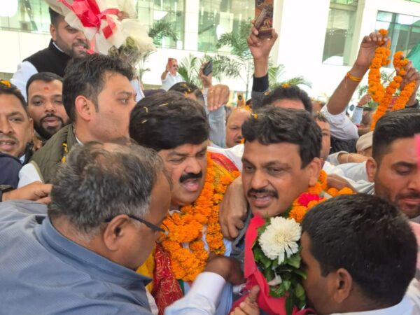 रुडकी।उत्तराखंड कांग्रेस कमेटी का प्रदेश अध्यक्ष नियुक्त किए जाने पर गणेश गोदियाल का प्रथम बार जोलीग्रांट एयरपोर्ट पहुंचने पर कांग्रेस के प्रदेश महामंत्री सचिन गुप्ता द्वारा फूल-मालाएं पहनकर गर्म जोशी