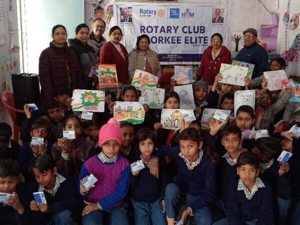 रुड़की। रोटरी क्लब रुड़की एलीट द्वारा, शंकरपुर स्थित राजकीय प्राथमिक विद्यालय में बच्चों के बैठने के लिए दरी का वितरण एवं देशभक्ति शीर्षक पर डाइंग प्रतियोगिता का आयोजन किया गया।