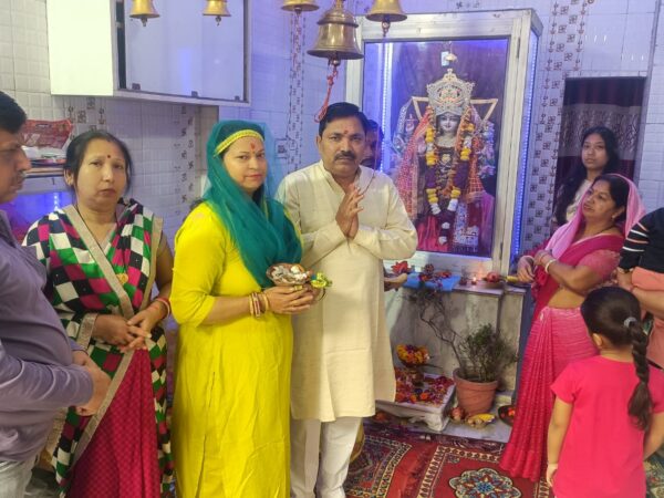 मनकमेश्वरी दुर्गा देवी मंदिर में प्रातःकाल चैत्र नवरात्रि पर्व के छठे नवरात्र माँ कात्यायनी की मुख्य यजमान संजय सैनी ने सपत्नी नीलम सैनी ने विधिवत पूजा अर्चना मंदिर आचार्य सत्यम