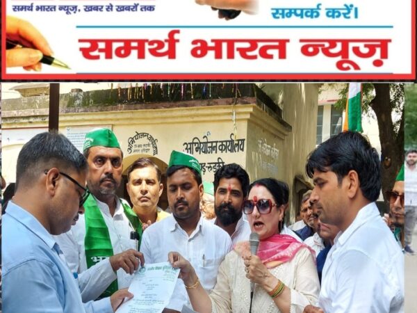 रुड़की।भारतीय किसान यूनियन अंबावत,महिला विंग की राष्ट्रीय अध्यक्ष श्रीमती रश्मि चौधरी के नेतृत्व में किसानों ने महामहिम राष्ट्रपति के नाम संबोधित एक ज्ञापन उप जिलाधिकारी विजय नाथ शुक्ला को सौंपा,जिसमें