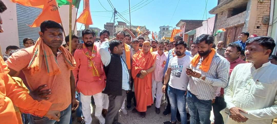 भगवानपुर । डाडा जलालपुर गांव में पुलिस प्रशासन की माजूदगी में शोभायात्रा निकाली गई। इस दौरान डाडा जलालपुर गांव में चप्पे-चप्पे पर पुलिस तैनात रही। शोभायात्रा शांति पूर्ण तरीके से सम्पन्न कराई गई। शोभा यात्रा पर जगह-जगह पुष्प वर्षा भी की गई। शोभा यात्रा के दौरान श्रद्धालुओं जय श्री राम के नारे गूंजते रहे।
