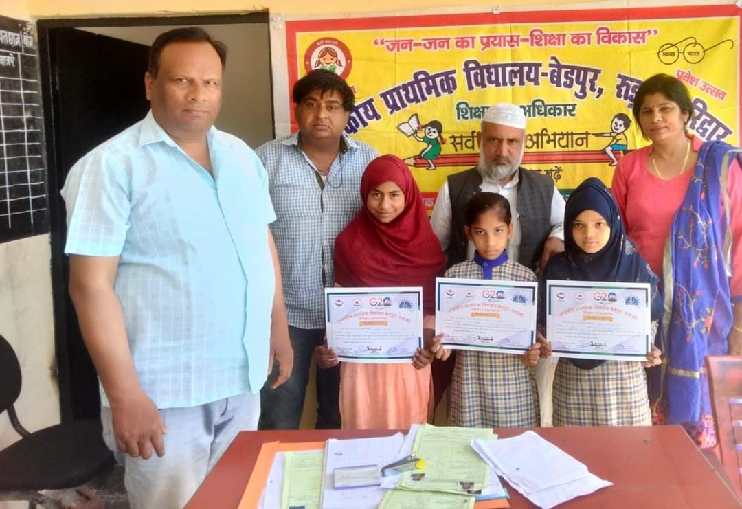 कलियर/ रूडकी। राजकीय प्राथमिक विद्यालय बेडपुर में आज प्रवेशोत्सव के अंर्तगत सेवित बस्ती में 6 से 14 वय वर्ग के नवप्रवेशियों के नामांकन हेतु जनसंपर्क किया। शिक्षकों ने अभिभावको से अपने बच्चो का दाखिला सरकारी स्कूल में कराने का आग्रह किया। विद्यालय के सत्र 2022-23 में पाठ्यसहगामी क्रियाकलाप व उपस्थिति, आचरण, स्वच्छता को लेकर होनहारों को सम्मानित किया गया उत्तराखंड शिक्षा विभाग के आह्वान पर सरकारी स्कूलो मे प्रवेशोत्सव मनाया जा रहा हैं इस अनुक्रम में राजकीय प्राथमिक विद्यालय बेडपुर में भी इसको लेकर जनजागरूकता संपर्क का आयोजन किया! इस अवसर पर प्रधानाध्यापक मु0इकराम ने अभिभावको से कहा की सरकार द्वारा पोषित विभिन्न योजनाओं से आच्छादित सरकारी स्कूलों में ही अभिभावक अपने बच्चो का दाखिला कराऐ। उन्होने कहा की सरकारी स्कूल में बच्चों को पढ़ाई के साथ-साथ उन्हें सिलेबस से जुड़ी बाहरी गतिविधियों से भी रूबरू कराया जाता है। बाल मुस्कान सांस्कृतिक क्लब , बेडपुर के प्रभारी शिक्षक संजय शर्मा वत्स ने ग्रामीणो व अभिभावको से संपर्क कर बताया की हमारे यहॉ बच्चों को रुचिकर गतिविधियां कराई जाती हैं। पाठ्यक्रम पर आधारित गतिविधियां भी यहॉ कराई जाती है यानी बच्चों से खेल-खेल में पढ़ाई कराना| इनमें सामूहिक और कक्षा स्तर पर बच्चों को विभिन्न प्रतियोगिताएं होंती है, जो उनके सिलेबस को भी पूरा करती है साथ ही पाठ्यक्रम में शामिल विषयों के तहत बच्चों को ऐसा होमवर्क भी दिया जाता है, जिससे वे घर पर खेलते समय भी अपने सब्जेक्ट को फालो करें। इसका सबसे बड़ा फायदा यह होता है कि बच्चों की ड्रॉप आउट की संख्या कम रहेगी, वहीं बच्चों की पढ़ाई की तरफ रुचि बढ़ेगी। इससे बच्चे आसानी से पाठ्यक्रम को समझ सकेंगे। खेल-खेल में सीखकर उनका परीक्षण भी इसी तरीके से किया जाएगा। इससे उनमें स्पर्धा की स्वच्छ भावना का भी निर्माण होगा।इस अवसर पर विद्यालय में कक्षा तीन की छात्रा जोया , शबनम व अक्शा , कक्षा चार की सामिया , गुलनार , मनतशां, कक्षा पांच की अलफिशा , उज्मा, अलशिफा को कक्षा स्तर पर क्रमशः प्रथम , द्वितीय, तृतीय आने पर प्रमाण पत्र देकर सम्मानित भी किया गया!विद्यालय में नवप्रवेशियों का नामांकन भी किया गया। इस अवसर पर मु0 इकराम, नितिन शर्मा„ सुमन चौहान , संजय शर्मा वत्स , सन्नो, इरफाना, छवि, अफसावा, सहराज , अनम, इसरत आंगनबाडी कार्यकत्री व सहायिकाओं ने सहयोग प्रदान किया।
