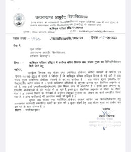 हमेशा विवादों में रहने वाला उत्तराखंड आयुर्वेद विश्वविद्यालय में एक नया विवाद खड़ा हो गया है । विश्वविद्यालय के कुलपति डॉ० सुनील जोशी द्वारा शासकीय नियमों का उल्लंघन कर दूषित भावना से एकतरफा निर्णय लिए जा रहे हैं। ताजा मामला माननीय उच्च न्यायालय, नैनीताल में योजित अवमानना वाद संख्या संख्या 348 /2022 की सुनवाई में कुलपति द्वारा माननीय उच्च न्यायालय को अवगत कराया कि कि उनका कुलपति पद का कार्यकाल 03 माह से भी कम रह गया है अतएव वे नियमानुसार कोई भी नीतिगत निर्णय नहीं ले सकते। इसके विपरीत कुलपति के अनुमोदन से प्रभारी कुलसचिव डॉ अनूप कुमार गक्खड़ द्वारा डॉ आलोक कुमार श्रीवास्तव की पदोन्नति हेतु प्राप्त आवेदन/ प्रत्यावेदन को अपने आदेश दिनांक 20 जून 2023 के द्वारा निरस्त कर दिया गया है। इससे स्पष्ट होता है विश्वविद्यालय में मनमानी चल रही है एवं साथ ही नियमों का मखौल उड़ाया जा रहा है इसका ताजा उदाहरण विश्वविद्यालय के दो कर्मियों के विरुद्ध जांच उन लोगों से कराई जा रही है जो पहले से ही विवादित रहे हैं।