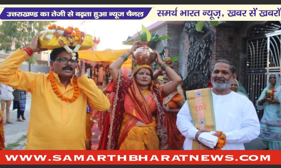 रुड़की। प्राचीन शिव मंदिर, ढंडेरा में श्रीमद् भागवत कथा ज्ञान यज्ञ का आयोजन आज से प्रारंभ हो गया। श्रीमद् भागवत कथा आरंभ होने से पूर्व आज भव्य मंगल कलश यात्रा का आयोजन किया गया।भव्य मंगल कलश यात्रा सिद्ध प्राचीन शिव मंदिर में भागवत के पूजन के साथ शुरू हुई। यात्रा मंदिर परिसर से शुरू होकर ग्राम ढंडेरा की मुख्य परिक्रमा के साथ सभी देवस्थानों पर पूजा अर्चना के साथ वापस मंदिर परिसर में संपन्न हुई। इस दौरान कथा व्यास आचार्य सतीश चंद्र कोठारी ने बताया कि कल आज प्रातः काल सुबह 9:00 बजे पितृ पूजन तथा अपराह्न 3:00 बजे से मंदिर परिसर में ही श्रीमद् भागवत कथा प्रारंभ होगी जो 12 अक्टूबर तक चलेगी तथा 13 अक्टूबर को हवन यज्ञ के साथ ही भंडारे का आयोजन किया जाएगा। कलश यात्रा में कलित कोठारी, बृजेश बडोला, नितिन, शुभम, विवेक, अजय आदि ब्राह्मणों के साथ कथा के मुख्य यजमान अनिल पुंडीर व श्रीमती अनिता पुंडीर के साथ समस्त क्षेत्र से अनेक श्रद्धालु महिलाएं एवं भक्तजन मंगल कलश यात्रा में शामिल रहे। नगर पंचायत क्षेत्र में कलश यात्रा का बैंड बाजा के साथ श्रद्धालुओं ने अनेक जगह स्वागत किया। कलश यात्रा में यतींद्रानंद सरस्वती, संजीव कुशवाहा, अभिषेक पुंडीर, रिंकल पुंडीर, राहुल चौहान, रवि राणा, रविंद्र चौहान, श्रीमती अनीता पुंडीर, गीतांजलि चौहान, मीनाक्षी, शशि बाला पुंडीर, कुसुम देवी, संतोष देवी, नेहा राठी, शिमला देवी, संतो देवी, रीता देवी, सुकेश, भगवती देवी, गोदावरी गंगा देवी, मंजू ,अनू हनुमंती, अनिता, सुदीन भट्ट सविता देवी रेखा रिंकू आदि अनेक श्रद्धालु गण ने प्रतिभाग किया।