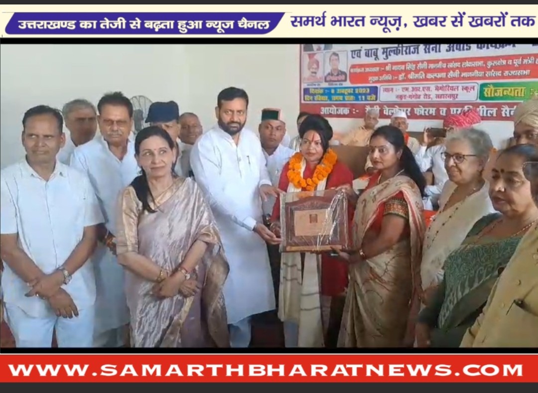 लावारिसो की वारिस क्रांतिकारी शालू सैनी को सहारनपुर में सैनी समाज द्वारा हुए भव्य कार्यकर्म में माननीय सांसद नायाब सैनी जी व माननीय सांसद कल्पना सैनी जी द्वारा सैनी रत्न अवार्ड से किया गया सम्मानित सभी ने शालू सैनी की बहादुरी पर गर्व करते हुए पूरे देश का गौरव बताया* आज सहारनपुर की पावन धरती पर हरियाणा से माननीय सांसद नायाब सिंह सैनी जी व उत्तराखंड से माननीय सांसद बहन कल्पना सैनी जी पूर्व विधायक नरेश सैनी भारतीय जनता पार्टी के जिला अध्यक्ष महेंद्र सैनी जी द्वारा सैनी रत्न अवार्ड से सम्मानित किया गया बता दें कि क्रांतिकारी शालू सैनी ने अपनी जान की बाजी लगाकर कोरोना काल में उन मृतकों के अंतिम संस्कार करने सुरु किए थे जिनके अपने भी हाथ नही लगा रहे समाज सेवा के नाम पर अपनी जान की बाजी लगा देने वाली क्रांतिकारी शालू सैनी अब लावातिसो की वारिस के नाम से जानी जाती है पिछले चार सालों से लगातार अपने खर्चे से लाबारिसो के अंतिम संस्कार करने वाली शालू सैनी वर्ल्ड गिनीज होल्डर ह और आज वो पूरे देश के लिए मिशाल बन चुकी है चारो तरफ क्रांतिकारी शालू सैनी के बहादुरी के चर्चे सुनने को मिलते हैं जगह जगह उन्हें सम्मान दिया जा रहा है देश की ऐसी बेटी को सलाम ह जिसने करके दिखाया है की कोई कार्य करने के लिए जुनून की ओर आत्म विश्वास की जरूरत होती है जब ईश्वर पर भरोसा और खुद पर अटूट विश्वास हो तो कोई काम नामुमकिन नहीं होता ये सिद्ध कर दिखाया है क्रांतिकारी शालू सैनी ने ऐसी बेटी के निस्वार्थ सेवा में सहयोगी जरूर बने 8273189764