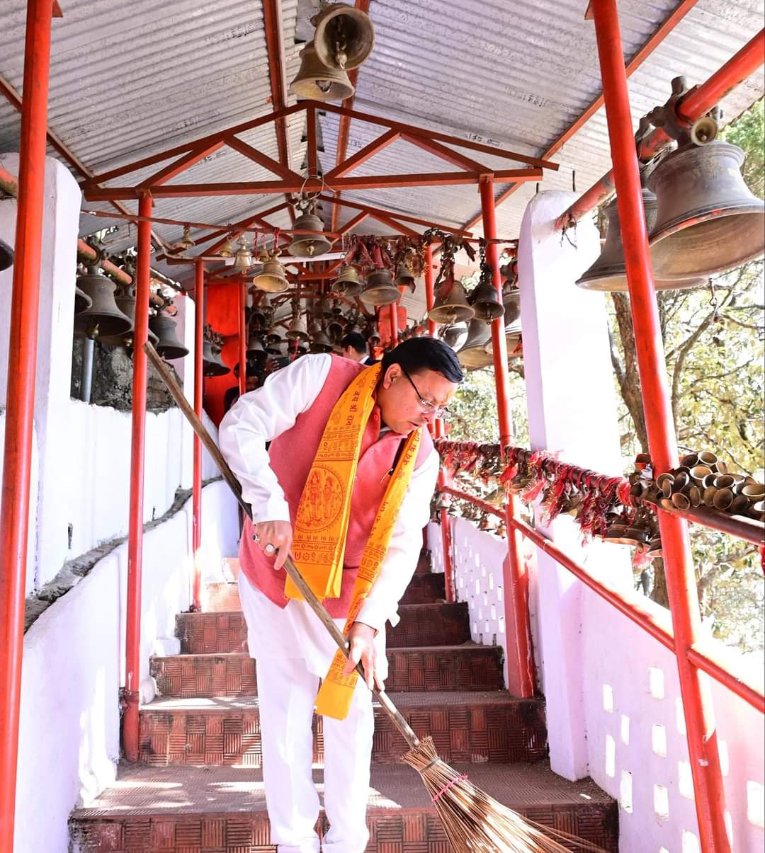 देहरादून। प्रदेश के सभी धार्मिक स्थलों और प्रतिष्ठानों में 14 जनवरी से 22 जनवरी तक सांस्कृतिक कार्यक्रम होंगे। रविवार को कैंचीधाम से मुख्यमंत्री पुष्कर सिंह धामी ने प्रदेश में “सांस्कृतिक उत्सव” का शुभारंभ किया। उन्होंने कैंचीधाम और घोड़ाखाल मंदिर में स्वच्छता अभियान चलाकर जन जन को इस मुहिम से जुड़ने का आह्वान किया। सर्वप्रथम उन्होंने कैंची धाम में श्री राम शिला की साफ सफाई कर पूजा अर्चना की। फिर कैंची धाम मंदिर परिसर में आयोजित श्री राम भजन कार्यक्रम में भी सम्मिलित हुए। रामभक्ति में लीन होकर रामभजनों की स्तुति की।