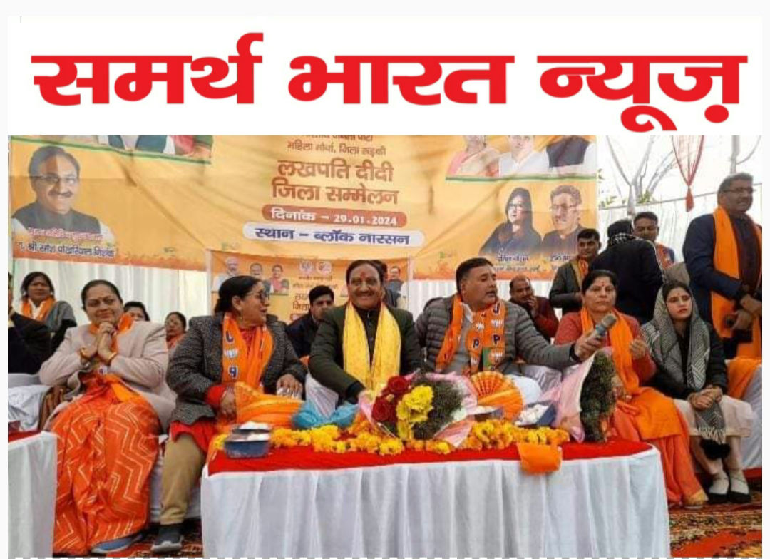 रुड़की। आज नारसन ब्लाक में लखपति दीदी कार्यक्रम “विकास कार्यों का शिलान्यास/उद्घाटन कार्यक्रम” में विभिन्न केंद्रीय एवं राज्य योजनाओं का लोकार्पण एवं शिलान्यास किया। इस अवसर पर कार्यक्रम में पहुंचे हरिद्वार के यशस्वी सांसद डॉ रमेश पोखरियाल निशंक ने कहा कि प्रधानमंत्री नरेंद्र मोदी के मार्गदर्शन में और धाकड़ धामी मुख्यमंत्री के नेतृत्व में प्रदेश में विकास की गंगा बह रही है। नित्य नई योजनाओं का उद्घाटन हो रहा है। इस अवसर पर डॉ निशंक ने बताया कि महिला सशक्तिकरण के तहत स्वयं सहायता समूह की महिला सदस्यों की आमदनी बढ़ाने वाली राष्ट्रीय लखपति दीदी योजना शुरू की गई है। इस योजना से देश की कुल 8.64 करोड़ महिला सदस्यों की आर्थिक स्थिति मे सुधार होगा । मुख्यमंत्री धामी के प्रयासों द्वारा प्रदेश में निवेश में अभूतपूर्व वृद्धि हुई है। जिला पंचायत अध्यक्ष किरण चौधरी ने कहा कि प्रदेश द्वारा चलाई जा रही कल्याणकारी योजनाओं से किसानों की आय में वृद्धि हुई है। भाजपा जिला अध्यक्ष शोभाराम प्रजापति ने कहा कि सांसद डॉ निशंक द्वारा लगातार विकास कार्य किया जा रहे हैं । लोगों के सुख-दुख में हमेशा पहुंचते हैं, उन्होंने कहा कि लखपति दीदी योजना में प्रत्येक महिला सदस्य की न्यूनतम वार्षिक आमदनी ₹100000 करने का लक्ष्य है । इस कार्यक्रम के प्रति महिलाओं को जागरूक करने के लिए हम प्रत्येक गांव-गांव तक जा रहे हैं।।ब्लॉक प्रमुख कविंद्र चौधरी ने कहा कि हरिद्वार सांसद डॉक्टर निशंक के मार्गदर्शन में इन सभी महत्वकांक्षी योजनाओं से क्षेत्र की देवतुल्य जनता व्यापक रूप से लाभान्वित होंगे। मंगलौर मंडी समिति अध्यक्ष डॉ मधु ने कहा कि मुख्यमंत्री पुष्कर सिंह धामी के नेतृत्व में आने वाली लोकसभा चुनाव में सभी लोकसभा सीट भाजपा के पक्ष में जाएगी। भाजपा शासन में हर वर्ग के लोगों का विकास हो रहा है । लोगों को रोजगार मिल रहे हैं,कार्यक्रम का संचालन जिला महामंत्री अरविंद गौतम ने किया, कार्यक्रम में उपस्थित रहने वालों में किसान मोर्चा के प्रदेश उपाध्यक्ष देवी सिंह राणा ,जिला मंत्री सतीश सैनी ,डॉ मधु सिंह, डॉ राजेश सैनी, ब्लॉक प्रमुख कोमल देवी, कविन्द्र चौधरी, प्रतिभा चौहान, विमला नेथानी,अलोक गौतम, विक्रांत राठी वरिष्ठ पार्टी पदाधिकारी एवं कार्यकर्ता उपस्थित रहे।