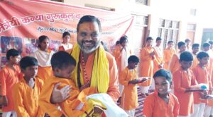 सहारा बने।निवर्तमान मेयर गौरव गोयल ने कहा कि वह तीस वर्षों से अपने जीवन की हर खुशी का पल अनाथालयों, बेसहारा बच्चों,बुजुर्गों एवं कुष्ठ रोगियों के बीच ही आकर मानते हैं।आश्रम की संस्थापिका आचार्य डॉक्टर सविता ने कहा कि उनके आश्रम में असहाय बच्चों को संस्कार एवं सनातन धर्म की शिक्षा के साथ ही उच्च शिक्षा भी दी जा रही है।इन बच्चों का भविष्य उज्जवल बनाने की दिशा में उनको विभिन्न संस्थाओं से जुड़े गणमान्य लोगों का सहयोग मिलता है,जिसके लिए सदैव ऐसे सहयोग कर्ताओं का ऋणी रहेगा।आचार्य सेमवाल जी महाराज द्वारा आश्रम के संस्थापिका आचार्य डॉक्टर सविता को शाल भेंटकर कर सम्मान किया गया तथा बालिकाओं द्वारा उनका तिलक कर दीर्घायु की कामना की गई।इस अवसर पर निखिल सेठी,बंटी जैन,श्रद्धा,अर्जुन,शगुन,संध्या,स्नेहा,लक्ष्मी आदि प्रमुख रूप से मौजूद रहे।
