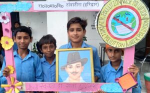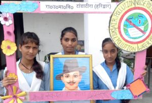 इस अल्प आयु में ही वे राजगुरु, सुखदेव व चंद्रशेखर जैसे वीर क्रन्तिकारियो के साथ मिलकर राष्ट्र हित में बहुत बड़े काम कर गए, अंग्रेजो ने उनकी लोकप्रियता व भारत माता के प्रति उनके समर्पण, त्याग व बलिदान से डर कर 23 मार्च 1931 को राजगुरु व सुखदेव के साथ फांसी की अमानवीय सजा दे दी लेकिन उनके इस बलिदान से प्रेरित होकर भारतीय स्वतंत्रता आंदोलन को ऐसी गति मिली जिसके फलस्वरूप 1947 तक अंग्रेजो को भारत छोड़ने को मजबूर कर दिया,इस बीच विद्यालय के शिक्षक श्री दिनेश लाल शाह, श्री मती सुषमा थपलियाल व जयंती रावत ने भी अपने विचार रखे एवं शहीदों के जीवन से सीख लेने की बात कही इस अवसर पर कु0 ललिता, उजैफ, अजित आदि छात्र छात्राओं ने भी भगत सिंह जी की जीवनी को पढ़कर सुनाया एवं उनके चित्र भी बनाये बाद में छात्र-छात्राओं ने उत्साह के साथ भगत सिंह जी के चित्र के साथ सेल्फी भी ली और उसे सोशल मीडिया पर भी प्रसारित किया ।