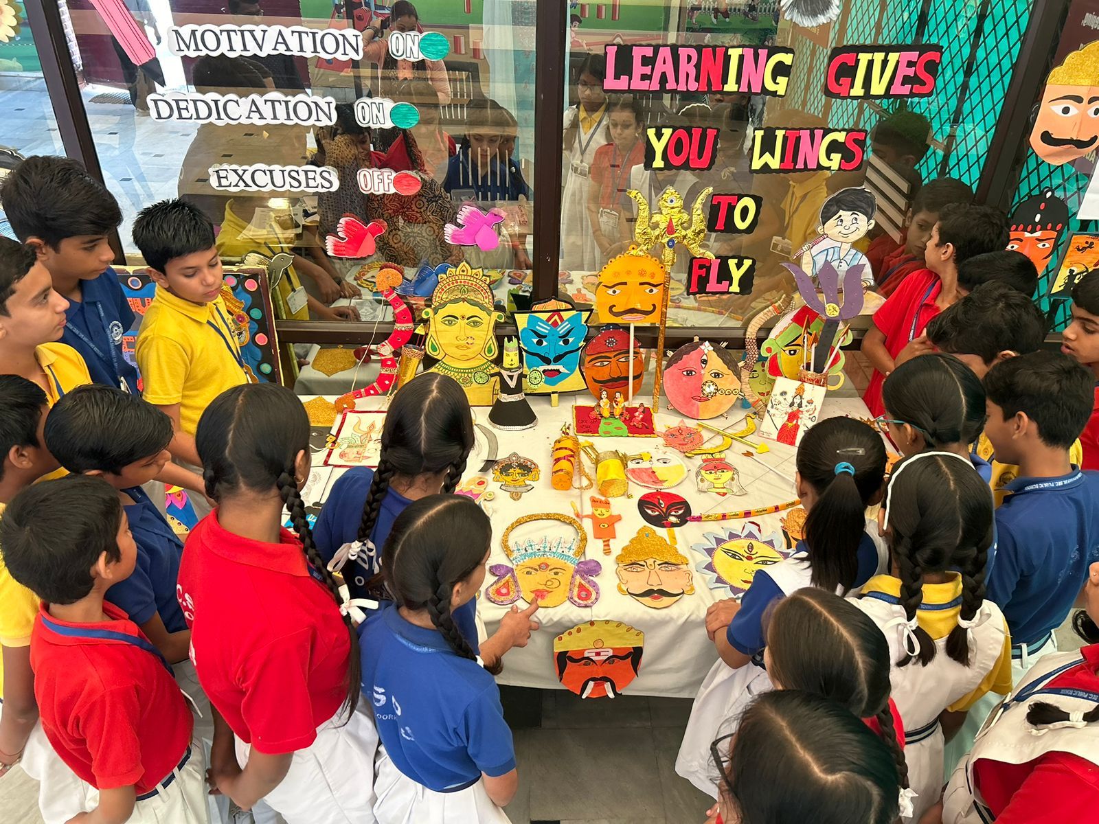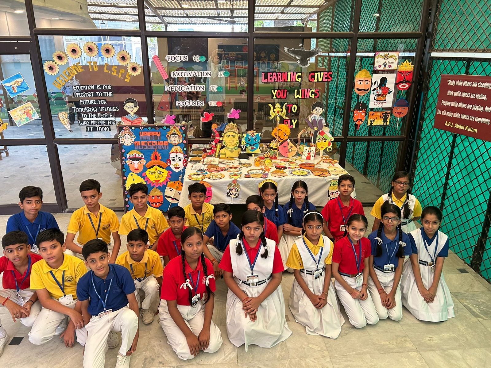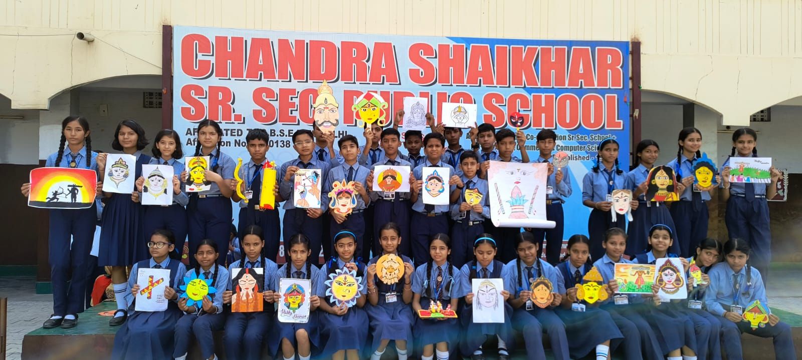 कक्षा-I से III तक के बच्चों ने *रावण फेस मास्क* बनाया। कक्षा- IV से VII तक के बच्चों ने *देवी दुर्गा के प्रॉप्स तथा देवी दुर्गा के अलग-अलग स्वरूपों का चित्र* बनाया । वहीं कक्षा- VIII और IX के बच्चों ने पोस्टर बनाकर *नवरात्रि व दशहरा मनाए जाने के अलग-अलग दृश्यों को दर्शाया* । विद्यालय की अध्यक्ष श्रीमती राखी चंद्रा , प्रबंधक श्री अभिषेक चंद्रा व प्रधानाचार्या श्रीमती पूनम चंद्रा ने बच्चों को प्रोत्साहित किया। उन्होंने बताया कि एक विविधतापूर्ण देश होने के नाते, भारत के विद्यालयों में होने वाली विभिन्न गतिविधियों के माध्यम से, छात्र न केवल त्योहारों के पीछे के महत्व को सीखते हैं, बल्कि वे परंपराओं और संस्कृति को भी अपनाते हैं। दशहरा 10 दिनों तक मनाया जाने वाला एक प्रमुख भारतीय त्योहार है, यह नवरात्रि के अंत का भी प्रतीक है। यह राक्षस रावण पर भगवान राम की जीत का प्रतीक है, इसलिए यह बुराई पर अच्छाई की जीत को दर्शाता है।
