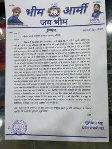 यति नरसिम्हानंद के बयान पर भीम आर्मी जय भीम संगठन ने आक्रोश,राष्ट्रपति के नाम ज्ञापन सौंपा