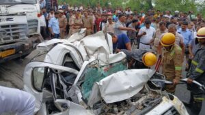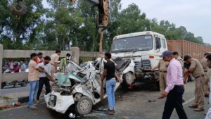 डंपर ने लगाया ब्रेक…पीछे से घुसी कार, फिर ट्रॉला ने रौंदा; विभत्स था नजारा