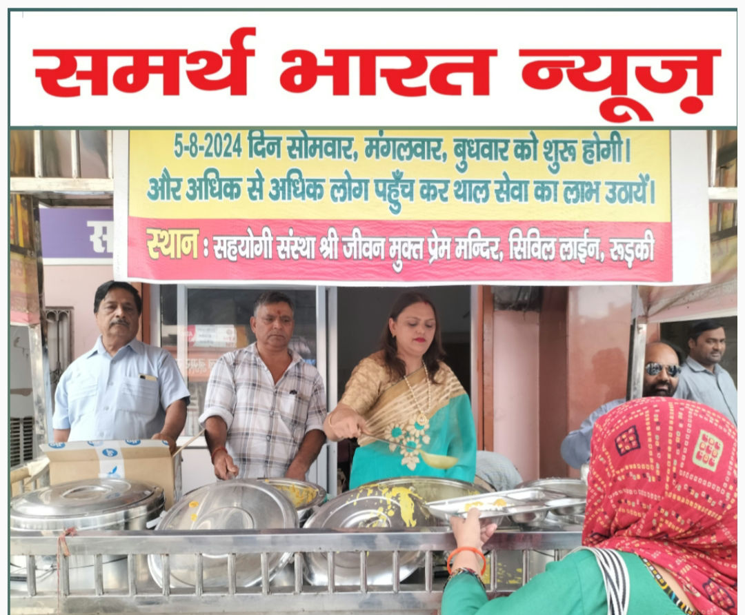 सर्व समाज सेवा समिति रुड़की द्वारा सप्ताह में तीन दिन सिविल लाइन प्रेम मंदिर के बाहर ₹5 थाल सेवा का आयोजन किया जाता है, इस अवसर पर समिति के मुख्य संयोजक प्रमोद जोहर ने कहा कि सर्व समाज सेवा समिति रूड़की द्वारा सभी के सहयोग से₹5 थल सेवा अर्थात ₹5 में भरपेट भोजन सभी के लिए दिया जाता है किंतु आज शरद पूर्णिमा के अवसर पर भोजन में विशेष खीर का समावेश किया गया था इस अवसर पर रेलवे बोर्ड सलाहकार