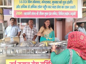 किंतु आज शरद पूर्णिमा के अवसर पर भोजन में विशेष खीर का समावेश किया गया था इस अवसर पर रेलवे बोर्ड सलाहकार समिति सदस्य पूजा नंदा ने कहा कि सर्व समाज सेवा समिति द्वारा जो यह₹5 में थाल सेवा का पुनीत कार्य किया जा रहा है वास्तव में ₹5 का शुल्क केवल आत्म सम्मान के लिए रखा गया है इस अवसर पर उन्होंने कहा कि मेरा तो सभी से ही है निवेदन है कि
