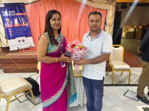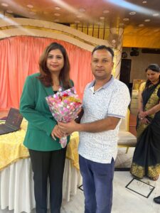 मिस मेघा शर्मा जी सीनियर एडवाइजर मैक्स लाइफ आप सभी को मेरे द्वारा फूलों का गुलदस्ता देकर सम्मानित किया गया