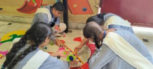 तक के सभी बच्चों ने भाग लिया। बच्चों ने बहुत मनमोहक व सुंदर-सुंदर रंगोलिया बनाई। रंगोली प्रतियोगिता में *प्रथम द्वितीय व तृतीय* स्थान पाने वाले बच्चों को विद्यालय की अध्यक्ष श्रीमती राखी चंद्रा , प्रबंधक श्री अभिषेक चंद्रा व प्रधानाचार्य श्रीमती पूनम चंद्रा ने पुरस्कृत किया वह बच्चों का उत्साहवर्धन किया।
