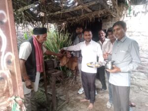 संकल्प लिया गाय हमारी माता है देश धर्म का नाता है गौ माता का पालन हो हर घर में हर घर में गौ माता को जीने दो दूध की नदिया बहने दो माता के हत्यारे को फांसी दो फांसी दो कटती गैया करे पुकार बंद करो यह अत्याचार के जयकारा से आसमान गुंज उठा मौके पर श्रीमती सरोज देवी सुमन देवी कुमारी आयुषी कुमारी मानसी कुमारी सेवी कुमारी अंशी कुमारी युवी अंश सहित अनेक कार्यकर्ता उपस्थित थे जिला मंत्री डॉक्टर आजाद सिंह के साथ संगठन मंत्री उत्तराखंड सुकर्म पाल राणा ने अकोढा खुर्द में ग्राम प्रधान के आवास पर देसी गाय विधि विधान से हल्दी रोली चावल