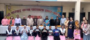 विद्यालय की प्रधानाचार्या श्रीमती भारती अग्रवाल जी द्वारा बताया गया कि पेंशनर्स एंड सीनियर सिटीजन वेलफेयर ट्रस्ट रुड़की आर्थिक रूप से कमजोर छात्राओं तथा गरीब व्यक्तियों की मदद के लिए हमेशा अग्रसर रहती है। आज इस वेलफेयर ट्रस्ट द्वारा विद्यालय में कक्षा 10 की निर्धन छात्राओं को प्रोत्साहन राशि प्रदान की जाने पर प्रधानाचार्या श्रीमती भारती अग्रवाल जी ने पेंशनर्स एंड सीनियर सिटीजन वेलफेयर ट्रस्ट के पदाधिकारियों का हृदय से धन्यवाद किया। तथा साथ ही इस कार्यक्रम में आने के लिए श्री मारवाडी सभा के सचिव श्री सुरेश कुमार अग्रवाल जी, सदस्य श्री जयचंद गोयल जी, श्री दिनेश अग्रवाल जी, श्री पवन कुमार गुप्ता जी के द्वारा अपना कीमती समय विद्यालय को दिया उसके लिए हृदय से धन्यवाद किया।