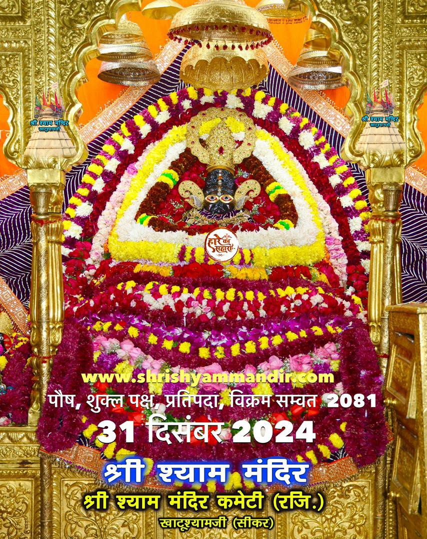 जय श्री श्याम जी। कल नववर्ष के अवसर पर आप सभी श्याम प्रेमी अपने श्याम प्रभु से मिलने के लिए जितने उत्सुक हो,उतने ही व्याकुल हमारे प्रभु खाटू वाले आपसे मिलने को है। कल श्याम प्रभु नये मुकुट,नये कुंडल एवं दो नये छतर के साथ आपके स्वागत के लिए श्री लक्ष्मीनारायण खाटू श्याम मंदिर लालकुर्ती में विराजमान होंगे। कल नववर्ष पर दर्शन के लिए रेलिंग की व्यवस्था की जायेगी। आप सभी से विनम्र अनुरोध है कि आप सभी आराम से रेलिंग से होकर ही मंदिर के अंदर प्रवेश करें।कल मंदिर दोपहर 2बजे तक खुला रहेगा। उसके उपरांत सांयकाल 4बजे से रात्रि 9बजे तक खुला रहेगा। कल नववर्ष पर निशान यात्रा दोपहर 3बजे दुर्गा चौक रूड़की से प्रारंभ होकर श्री लक्ष्मीनारायण खाटू श्याम मंदिर लालकुर्ती रुड़की पर पहुंचेगी। आप सभी श्याम प्रेमी