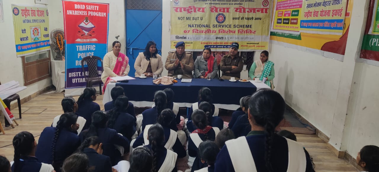 आज दिनांक 4 जनवरी 2025 को राष्ट्रीय सेवा योजना के 07 दिवसीय विशेष शिविर के तीसरे दिन में मुख्य अतिथि के रूप में ट्रैफिक इंस्पेक्टर श्री सुनील सती जी और प्रधानाचार्या श्रीमती भारती अग्रवाल जी विशिष्ट अतिथि के रूप में उपस्थित रही । राष्ट्रीय सेवा योजना विशेष शिविर के तीसरे दिन ट्रैफिक इंस्पेक्टर श्री सुनील सती जी ने लाइसेंस ,इंश्योरेंस, हेलमेट आदि की जीवन में उपयोगिता बतायी। उन्होंने नशा करके वाहन चलाने पर होने वाले दुष्परिणामों के बारे में जानकारी दी तथा दुर्घटना से बचने के नियम बताएं और स्वयं सेविकाओं को अपनी सुरक्षा के लिए किससे सहायता लेनी चाहिए एवं हेल्पलाइन नंबर 100 व 112 का महत्व बताकर स्वयं सेविकाओं को जागरूक किया। इसी के साथ दूसरे दिन बौद्धिक सत्र के दौरान कार्यक्रम अधिकारी अनु शर्मा द्वारा स्वयं सेविकाओं को नशा मुक्त समाज के बारे में जानकारी दी और कहा कि किसी भी प्रकार का नशा हमारे शरीर के लिए हानिकारक है नशा करने के बाद मनुष्य अपने होशोहवास में नहीं रहता है और उसको अच्छे बुरे की पहचान भी नहीं रहती है नशा एक घातक बीमारी की जननी है जो सभी के लिए हानिकारक है ग्राम ढणडेरा मैं नशा उन्मूलन रैली निकाली गई रैली का मुख्य उद्देश्य नशे को जड़ से समाप्त करना और समाज में नवयुवकों में तेजी से बढ़ती हुई नशे की प्रवृत्ति को रोकना है। रैली के दौरान जो करे नशा ,उसकी हो बुरी दशा, नशा नहीं विनाश है,मनुष्य के लिए अभिशाप है , स्लोगन लिखें बैनर और नारों के साथ रैली निकाली गई इस अवसर पर स्वयं सेविकाओं को ढणडेरा वासियों को ध्रूमपान एवं नशीले पदार्थों के सेवन से होने वाले नुकसान के बारे में बताया और नशा ना करने के लिए प्रेरित किया इस अवसर पर सहायक कार्यक्रम अधिकारी श्रीमती रीतू यादव, कुमारी अनुराधा उपस्थित रहीं और सभी कार्यक्रमो में पूर्ण सहयोग प्रदान किया।