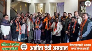 रुड़की नगर निगम क्षेत्र के मतलबपुर वार्ड के भाजपा प्रत्याशी नभ मौर्य के चुनावी कार्यालय का हुआ उद्घाटन, इस अवसर पर मुख्य अतिथि के रूप में पहुंचे जिला महामंत्री प्रवीण संधू ने सभी वार्ड वासियों से भाजपा के पक्ष मतदान करने की अपील करते हुए भाजपा की जनकल्याणकारी योजनाओं के विषय में जानकारी दी, इस अवसर पर रेलवे बोर्ड सदस्य पूजा नंदा ने वार्ड वासियों को भाजपा के पक्ष में मतदान करने की अपील करते हुए कहा कि यदि वार्ड में भाजपा का प्रत्याशी को जीत होगी तो ट्रिपल इंजन की सरकार होने से वार्ड का चौमुखी विकास होगा इस अवसर पर पूर्व