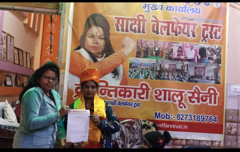 -साक्षी वेलफेयर ट्रस्ट की राष्ट्रीय अध्यक्ष क्रांतिकारी शालू सैनी ने पुष्प गुच्छ व नियुक्ति पत्र देकर किया स्वागत
