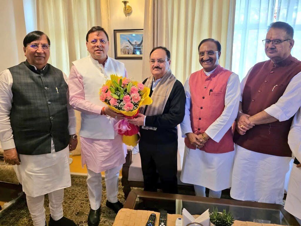 भाजपा राष्ट्रीय सह-कोषाध्यक्ष व सासंद राज्यसभा डा.नरेश बंसल ने दो दिवसीय उत्तरखंड दौरे पर पहुंचे भाजपा राष्ट्रीय अध्यक्ष व केंद्रीय स्वास्थ्य एवं परिवार कल्याण मंत्री आदरणीय श्री जेपी नड्डा का मुख्यमंत्री श्री पुष्कर सिंह धामी एवं अन्य वरिष्ठ भाजपा नेतागण सहित स्वागत व अभिनंदन किया।इस अवसर पर विभिन्न समसामयिक विषय पर चर्चा हुई।