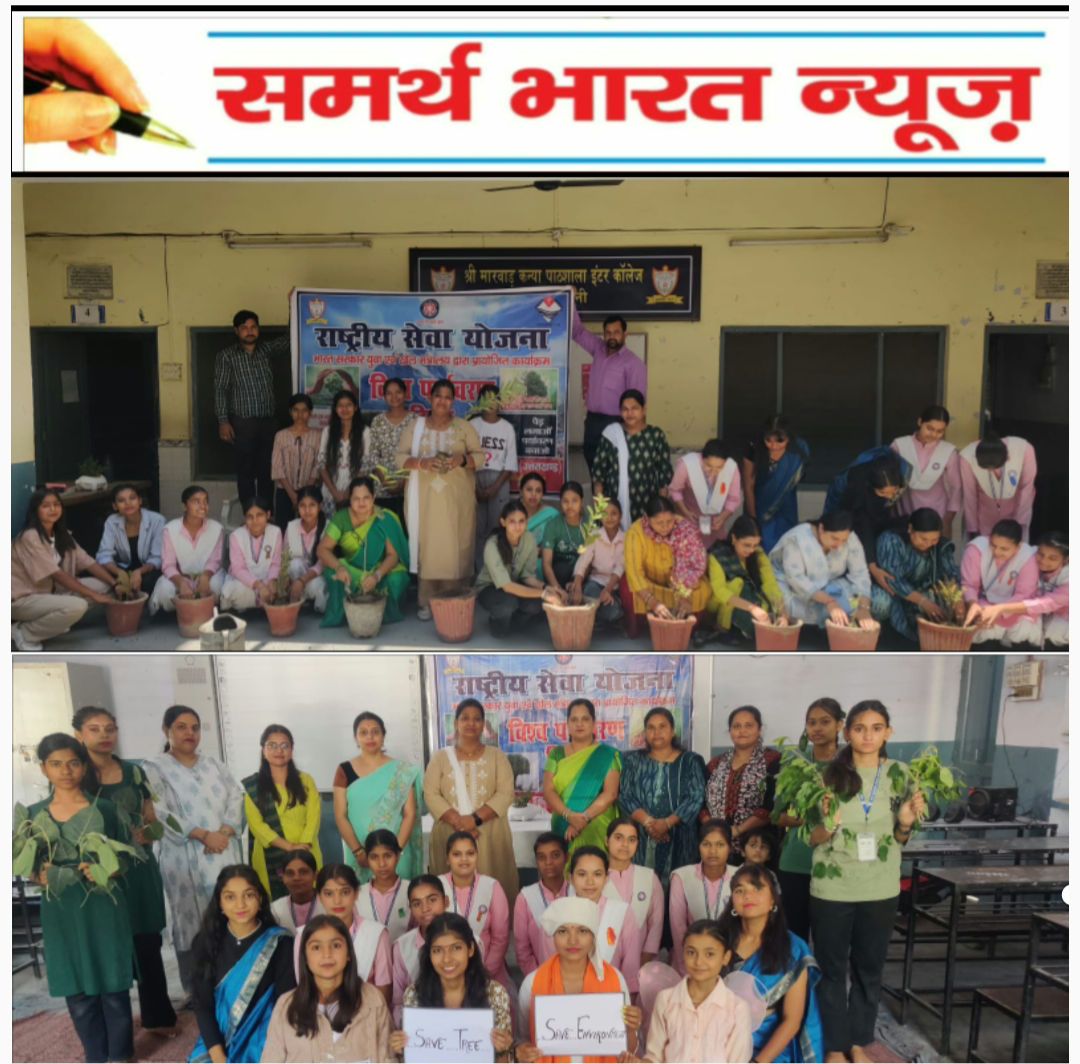 आज दिनांक 5 जून 2025 को विद्यालय श्री मारवाड़ कन्या पाठशाला इंटर कॉलेज ,रुड़की, हरिद्वार में राष्ट्रीय सेवा योजना (NSS) की इकाई 546 द्वारा अन्तर्राष्ट्रीय पर्यावरण दिवस बड़ी ही धूमधाम से मनाया गया। जो कि राष्ट्रीय सेवा योजना का एक वनडे शिविर भी है। आज के कार्यक्रम का संचालन एवं स्वयं सेवियों का दिशा निर्देशन राष्ट्रीय सेवा योजना (NSS) की कार्यक्रम अधिकारी श्रीमती अनु शर्मा प्रवक्ता गृह विज्ञान के द्वारा किया गया। श्रीमती अनु शर्मा द्वारा बताया गया कि इस वर्ष 2025 के पर्यावरण दिवस की THEME है –