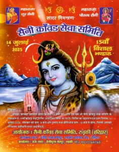 आज श्रावण मास के प्रथम सोमवार से सैनी कावड़ सेवा समिति रुड़की द्वारा संचालित आज 15 वें विशाल भंडारे का शुभारम्भ पूजा अर्चना एवं यज्ञ/ हवन के बाद प्रारम्भ हुआ…गत वर्ष की भांति भण्डारा समाज के प्रतिष्ठित गांव ढंडेढ़ी में शुरू हुआ.. आज सुबह से ही इस विशाल, दिव्य एवं भव्य निःशुल्क भंडारे में लंबी लम्बी कतारे लगी रही लेकिन 400 से अधिक ऊर्जावान सदस्यों की टीम के सुंदर प्रबंधन से सब कुछ सहजता से चल रहा है… आज पहले दिन उपस्थित गणमान्यों में भण्डारे के मुख्य यज्ञमान सतीश सैनी (मंगलम ज्वैलर्स) मदन सैनी (पूर्व प्रधान हसनपुर) श्री कांत सैनी (प्रधान हसनपुर) श्री अजय सैनी (शिवाल मार्बल रुड़की) राजेन्द्र कुमार सैनी (सेवा नि0 अधिशासी अधि0) रोमा