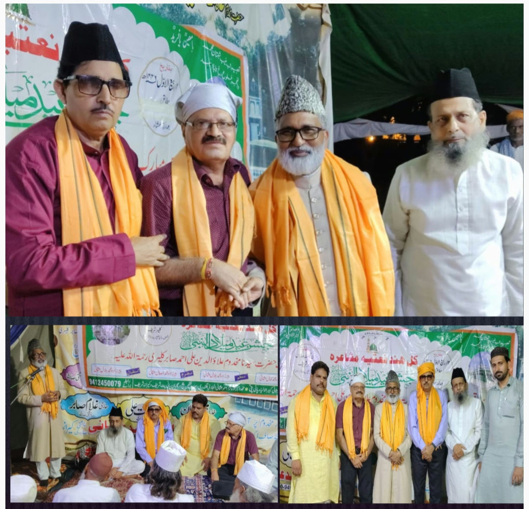 रुड़की/पिरान कलियर।हजरत साबिर पाक रह० के 757-वें उर्स के मौके पर सालाना नातिया मुशायरा पानीपत पंच दरगाह के सज्जादा नशीन पीरशाह निसार अहमद उस्मानी कैरानवी की सदारत में राही गेस्ट हाउस में आयोजित किया गया,जिसमें उत्तराखंड के मदरसा बोर्ड के चेयरमैन (राज्यमंत्री स्तर) मुफ्ती शमून कासमी ने शिरकत की,जबकि अतिथि के रूप में हज कमेटी के पूर्व चेयरमैन मौलाना जाहिद रजा रिजवी मौजूद रहे।साबिर पाक उर्स कमेटी के सचिव व अंतरराष्ट्रीय शायर अफजल मंगलौरी के संयोजन में देश भर से आये शायरों ने इसमें भाग लिया।मुख्य अतिथि मुफ्ती कासमी ने कहा कि भारत देश सदियों से सूफी-सन्तों और आध्यात्मिक विचार धारा का देश रहा है,जिसमें वसुधैव कुटुम्बकम तथा सर्वधर्म सम्भाव का संदेश पूरे विश्व के लिए रहा है।कैराना के सज्जादा नशीन पीर निसार उस्मानी ने मुख्य अतिथि राज्यमंत्री मुफ्ती कासमी,आयोजक अफजल मंगलौरी, जाहिद रजा रिजवी तथा आमन्त्रित शायरों की दस्तार बन्दी की।मुशायरे के संयोजक अफजल मंगलौरी ने कलाम पेश करने से पूर्व कहा कि गत दस वर्षों से उर्स कमेटी अपने स्तर से नातिया मुशायरा व महफिल-ए-किरात आयोजित करती चली आ रही है।वक्फ बोर्ड से कोई आर्थिक सहायता नहीं ली जाती है।मुशायरा अध्यक्ष पीर निसार उस्मानी ने हजरत साबिर पाक की जीवनी और राष्ट्रीय एकता में सूफी-सन्तों के योगदान पर रोशनी डाली।मुशायरे का शुभारंभ करते हुए मुजफ्फरनगर से पधारे उस्ताद शायर डॉ०मुकेश दर्पण ने फरमाया कि…..