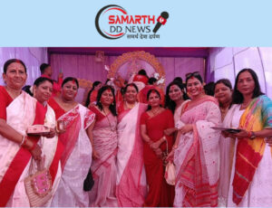 नगर निगम परिसर में दुर्गा पूजा के अंतिम दिन नारी शक्ति में सिंदूर खेला से बनाया विजय पर्व