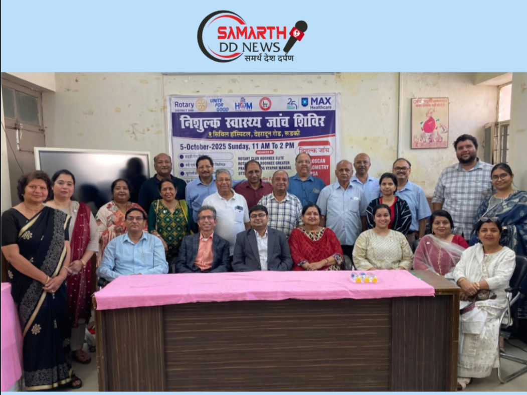 रुड़की। रोटरी क्लब रूडकी एलीट, रोटरी क्लब रूडकी ग्रेटर और प्रांतीय उद्योग व्यापार मंडल, उत्तराखंड के सहयोग से सिविल अस्पताल, रुड़की में एक निःशुल्क स्वास्थ्य जांच शिविर का सफल आयोजन किया गया। शिविर में मैक्स हॉस्पिटल वैशाली (ग़ाज़ियाबाद ) की विशेषज्ञ डॉक्टरों की टीम ने मरीजों का जाँच कर निःशुल्क परामर्श प्रदान किया। अमेरिका से पधारे डॉ. धरम कौशिक (Urologist) ने भी शिविर में अपनी विशेषज्ञता साझा की। शिविर के आयोजन में Max Hospital के डॉ. हर्षित गर्ग एवं रुड़की सिविल अस्पताल के CMS डॉ. कंसल का विशेष सहयोग रहा। शिविर में हड्डी रोग, स्त्री एवं ब्रेस्ट कैंसर, यूरोलॉजी (मूत्र रोग), पेट, लिवर एवं आंत रोग, हेड एवं नेक ऑन्कोलॉजी से संबंधित विशेषज्ञ डॉक्टरों ने अपनी सेवाएँ दीं। साथ ही Fibroscan, Uroflometry, PSA, BMD, और ECG जैसी महत्वपूर्ण जांचें पूर्णतः निःशुल्क की गईं। शिविर में 340 से अधिक ओपीडी परामर्श किए गए, जिससे शहर और आसपास के नागरिक लाभान्वित हुए। मुख्य अतिथि, विधायक रोटेरियन प्रदीप बत्रा ने डॉक्टरों की टीम का उत्साहवर्धन किया और रोटरी के इस सामाजिक प्रयास की सराहना की। उन्होंने कहा कि इस प्रकार के शिविर, स्वास्थ्य जागरूकता बढ़ाने में महत्वपूर्ण भूमिका निभाते हैं और निरंतर ऐसे सामाजिक कार्य करते रहने के लिए प्रेरित किया। रोटरी क्लब रुड़की एलीट की, वित्तीय सचिव, रोटेरियन रमा गुप्ता द्वारा प्रस्तुत उनके परिचय पत्र की भी सराहना की। कार्यक्रम के प्रोजेक्ट कोऑर्डिनेटर, रोटेरियन पीयूष गर्ग ने, मुख्य अतिथि, विधायक रोटेरियन प्रदीप बत्रा, CMS डॉ कंसल, अतिथियों, सहयोगी संस्थाओं, क्लब सदस्यों और डॉक्टरों का स्वागत किया एवं इस शिविर को सफल बनाने में सहयोग देने कि लिए आभार व्यक्त किया एवं आश्वासन दिया कि आगे भी क्लब की ओर से निरंतर सेवा के कार्य किये जायेंगे । रोटरी क्लब रुड़की एलीट की अध्यक्ष, रोटेरियन दीप्ति कर्माकर ने अपने उद्बोधन में रोटरी के वैश्विक कार्यों एवं “Service Above Self” (स्वयं से ऊपर सेवा) के मूल मंत्र पर प्रकाश डाला और उन्होंने मैक्स हॉस्पिटल के डॉक्टरों को धन्यवाद ज्ञापित करते हुए कहा कि ऐसे शिविर समाज के उन वर्गों तक स्वास्थ्य सुविधाएँ पहुँचाने का माध्यम हैं, जो सामान्यतः इनसे वंचित रह जाते हैं। कार्यक्रम का कुशल संचालन रोटेरियन राधिका अग्रवाल एवं क्लब सचिव रोटेरियन अरूणिमा सिंह द्वारा किया गया। उन्होंने धन्यवाद् प्रस्ताव प्रस्तुत करते हुए सभी उपस्थित गणमान्य, डॉक्टर्स, क्लब सदस्यों एवं अतिथि गण का धन्यवाद् किया। क्लब के सदस्य, रोटेरियन अलोक गर्ग (अध्यक्ष रोटरी क्लब रुड़की ग्रेटर), रोटेरियन अंजलि गर्ग, रोटेरियन रमा गुप्ता, श्रीमती सीमा वधावन, रोटेरियन प्रीती अग्रवाल, रोटेरियन राजीव मित्तल, रोटेरियन 