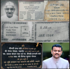 सन् 1925 के आसपास रुड़की का मेनबाजार पूरी तरह विकसित हो चुका था।द्वितीय विश्वयुद्ध के दौरान छोटी मुद्रा में कमी आ जाने पर तत्कालीन ब्रिटिश सरकार ने लाला केदारनाथ की बैंकर्स फर्म लाला लौती राम केदारनाथ को एक आना,दो आना,चार आना,आठ आना और बारह आना के सिक्के चलाने की अनुमति दे दी।लगभग तीन चार साल ये सिक्के पूरे सहारनपुर जनपद में चले।सन् 1960 में गौरव गोयल के ताऊ जी राजेन्द्र सेठ ने सिविल लाईन्स स्थित रुड़की के स्टेशन क्लब के लिए भूमि उपहार में दी।स्टेशन क्लब उच्चस्तरीय नागरिकों के लिए मनोरंजन,मेल मिलाप व उत्कर्ष का केंद्र बना।1944 में वर्तमान आर्य उपवन के लिए जमीन खरीदकर दिए जाने का विस्तृत उल्लेख अलग से दिया गया हैं।आपने अनेक तीर्थस्थलों पर अनेक मंदिरों,धर्मशालाओं में खुले हाथों से दान पुण्य किया।वर्ष 2022 में मेयर गोयल ने अपने जन्मदिन के अवसर पर सोलानी नदी श्मशान घाट समिति को लाखों रूपए कीमत की भूमि दान दी।उन्होंने अपने दादा-दादी,पिता की स्मृति में 2500 वर्ग फीट की भूमि संस्था को दान दी।शमशान घाट समिति इस भूमि का उपयोग सामाजिक कार्य के लिए कर रही है।