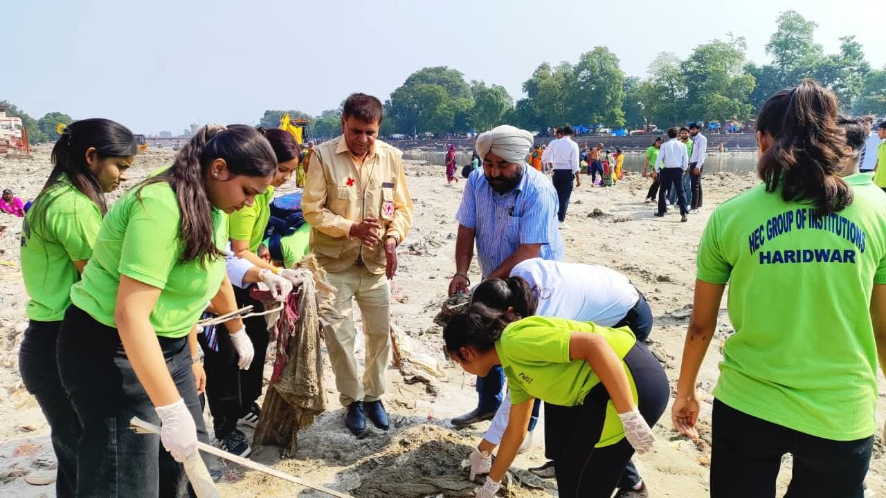 हरिद्वार। आज एचईसी् ग्रुप आफ इंस्टीट्यूशंस, हरिद्वार कीे राष्ट्रीय सेवा योजना इकाई के स्वंयसेवियों द्वारा मां गंगा की स्वच्छता एवं अविरलता हेतु स्वच्छता अभियान कार्यक्रम बिरला घाट निकट, हर की पैड़ी हरिद्वार में चलाया गया। जिसका मुख्य उद्देश्य सफाई के साथ जन-जागरुकता करते हुए समाज को संदेश देना ताकि गंगा की स्वच्छता बनी रहे। राष्ट्रीय सेवा योजना के स्वंयसेवियों का भी कर्तव्य था कि गंगा में जितने भी जो पॉलीथीन, कपड़े, टूटी हुई मूर्तियां आदि सब चीज पड़ी रहती है इन सबको एक जगह स्थान पर एकत्रित किया गया ताकि नगर निगम द्वारा उक्त स्थान पर एकत्रित कचरे को वहां से निकाला जा सके। इस कार्यक्रम में हरिद्वार रैड क्रॉस सोसाइटी के सेक्रेटरी डा0 नरेश चौधरी जी भी उपस्थित रहे और उनकी अगुवाई में यह कार्यक्रम किया गया। डॉ0 चौधरी ने एचईसी कॉलेज के चेयरमैन श्री संदीप चौधरी, राष्ट्रीय सेवा योजना जिला समन्वक डॉक्टर एसपी सिंह एवं कार्यक्रम अधिकारी श्री उमराव सिंह को स्वच्छता अभियान जैसे उत्कृष्ट कार्य के लिये शुभकामनाएं दी