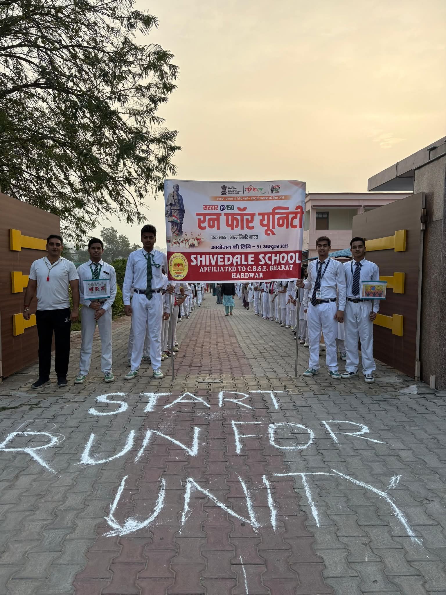 हरिद्वार, 31 अक्तूबर। शिवडेल स्कूल भेल के छात्रों ने लौह पुरुष सरदार वल्लभभाई पटेल की 150वीं जयंती के अवसर पर आयोजित रन फॉर यूनिटी में प्रतिभाग कर उन्हें श्रद्धांजलि दी। दौड़ में स्कूल के अध्यापक, अध्यापिकाएं एवं प्रधानाचार्य पुनीत श्रीवास्तव भी छात्र-छात्राओं के साथ रहे।