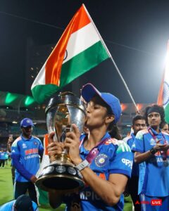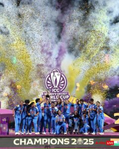 नवी मुंबई के डीवाई पाटिल स्टेडियम में रविवार को इतिहास रचते हुए भारतीय महिला क्रिकेट टीम ने पहली बार आईसीसी महिला वनडे वर्ल्ड कप 2025 जीत लिया. हरमनप्रीत कौर की कप्तानी में टीम इंडिया ने साउथ अफ्रीका को 52 रनों से हराकर सालों का इंतजार खत्म किया. भारत ने पहले बल्लेबाजी करते हुए 298 रन बनाए, जबकि साउथ अफ्रीका की टीम 246 रन पर सिमट गई. जीत के बाद खिलाड़ियों ने मैदान पर शानदार जश्न मनाया — “शानदार, जबरदस्त, जिंदाबाद… विश्व विजेता बेटियों ने रचा नया इतिहास.